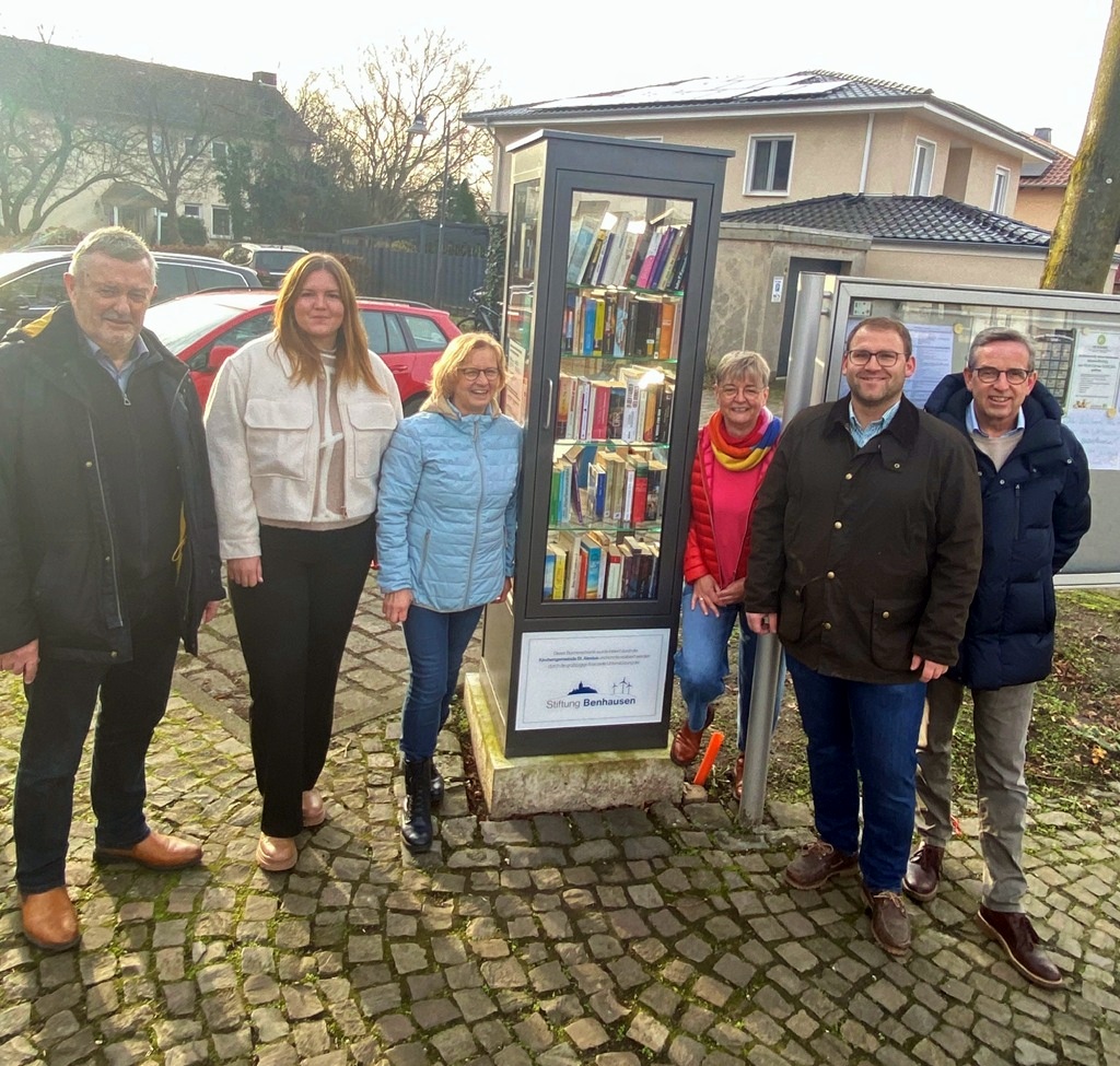 Mitten im Ortskern von Benhausen können sich die Bürger nun an ihrer „Bücher Bude“ bedienen. Die Kirchengemeinde St. Alexius Benhausen hat im Frühjahr das Projekt „Benhauser Bücher Bude“ in Angriff genommen. Damit gelesene Bücher nicht einfach im Regal verstauben oder in der Mülltonne landen, gibt es nun die Möglichkeit für alle Benser, die Kleinen und die Großen, sich 24/7 mit neuem Lesestoff zu versorgen oder gelesene Bücher anderen Personen zur Verfügung zu stellen. So leistet der Bücherschrank einen Beitrag zur Nachhaltigkeit und schont den Geldbeutel.